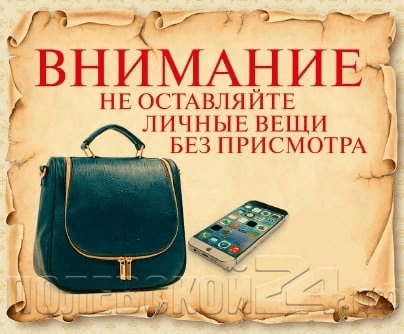 ​- вообще не оставляйте без присмотра свои личные вещи: документы, мобильные телефоны, сумки, обувь, одежду и другое.
