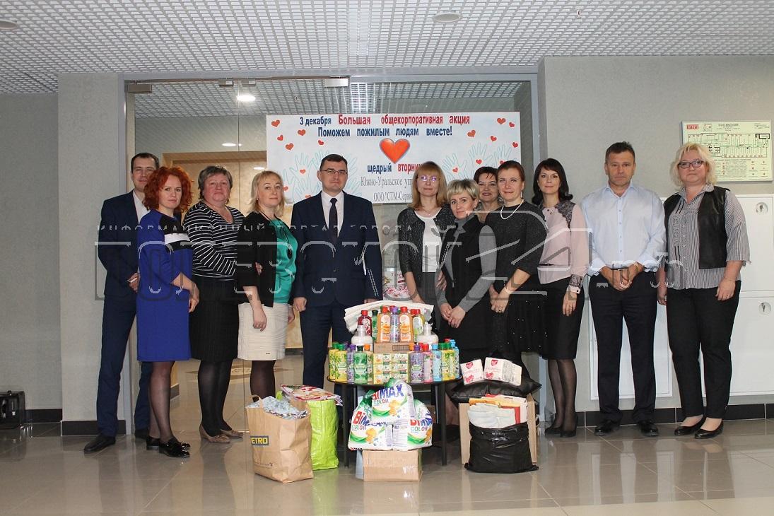 На Орском машиностроительном заводе собирали пожертвования на приобретение противопролежневых матрасов для пациентов паллиативного отделения ГБ №1. На Синарском трубном заводе удалось собрать более 20 тысяч рублей и 50 наименований средств личной гигиены для нуждающихся. Средства передадут в Комплексный центр социального обслуживания населения, работники которого осуществляют уход за одинокими пожилыми людьми. Северские трубники к ЩедромуВторнику сформировали солидный список подарков для старшего поколения. Кому-то нужен блендер, микроволновая печь, газовая плита, стиральная машина, сенсорный телефон, а кто-то нуждается в специальной медицинской кровати. Волонтерская команда Волжского трубного завода занесла в список добрых дел визит к ветеранам завода – участникам ВОВ. Молодые заводчане подготовили для них вкусные подарки и решили помочь с домашними делами. Встреча со свидетелями тех времен – это уникальный шанс прикоснуться к истории, выразить благодарность за подаренный мир и возможность поддержать связь поколений. Таганрогский металлургический завод взял на себя заботу о судьбе ветерана, оказавшегося в трудной жизненной ситуации – его дом сгорел во время пожара. Молодежный комитет завода организовал работы по очистке территории, профсоюз собрал необходимую погорельцам на первое время одежду, завод завез строительные материалы. 30 предприятий СТМ, включая сервисные депо и управления, поддержали инициативу БФ «Синара» и в городах своего присутствия собирали необходимые средства гигиены для местных домов-интернатов, пансионатов для пожилых людей, ветеранов и областных социальных центров обслуживания населения. Сотрудники предприятий, которые находится в Екатеринбурге и Москве, все собранные средства передали Приходу во имя святой преподобномученицы великой княгини Елисаветы Феодоровны, где на постоянной основе живут одинокие старики, тяжелобольные и бездомные люди. 18 коробок со средствами личной гигиены были переданы сестрам Милосердия, которые ухаживают за постояльцами Прихода.