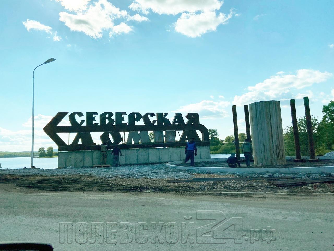 На берегу Северского пруда начался монтаж композиции в виде указателя «Северская домна».