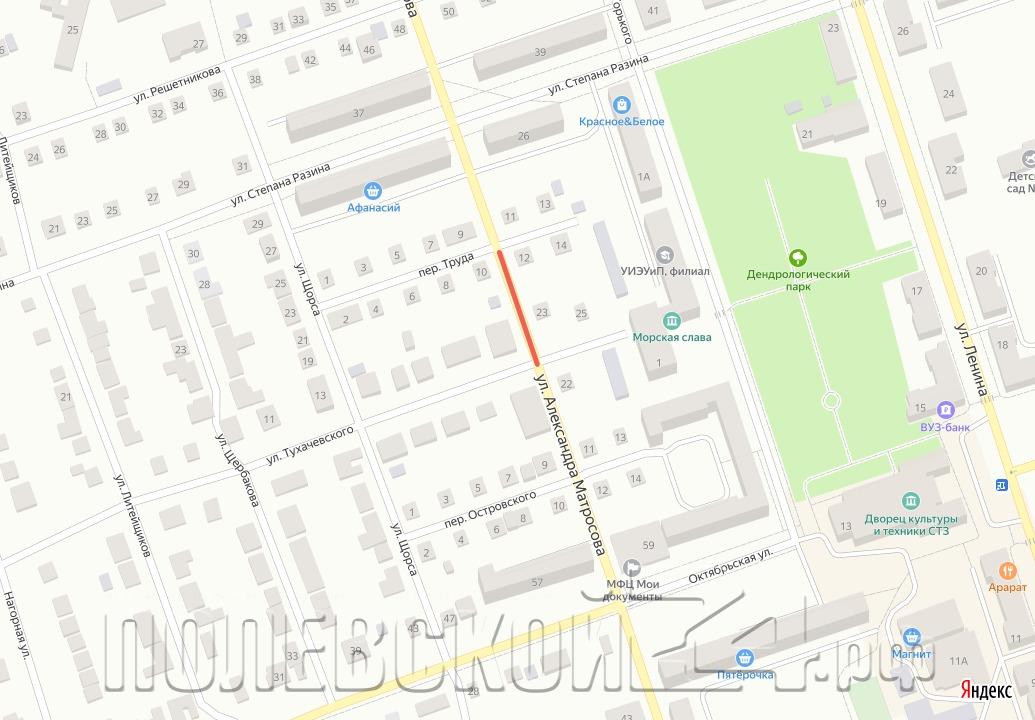 10 июня, в четверг, с 09:00 будет перекрыт участок автомобильной дороги по ул. А.Матросова от Тухачевского до Труда.