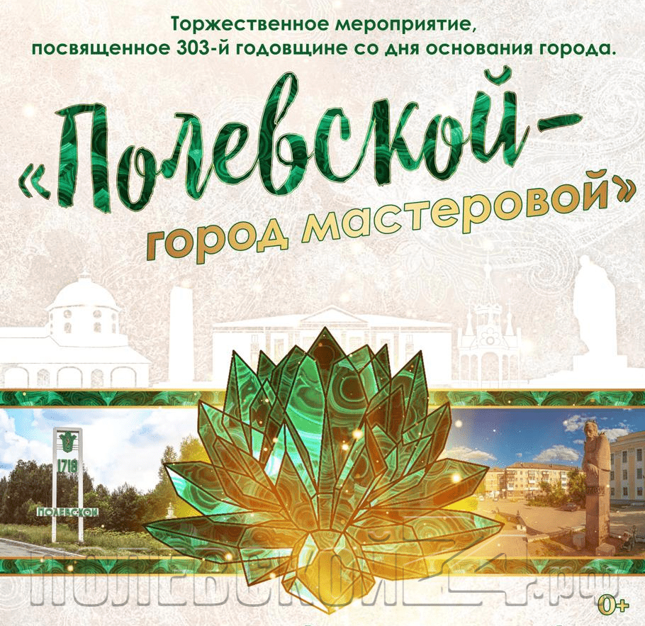 15 июля, в 16:00, в Центре культуры и народного творчества состоится торжественное мероприятие «Полевской — город мастеровой», посвященное 303-й годовщине со дня основания города.