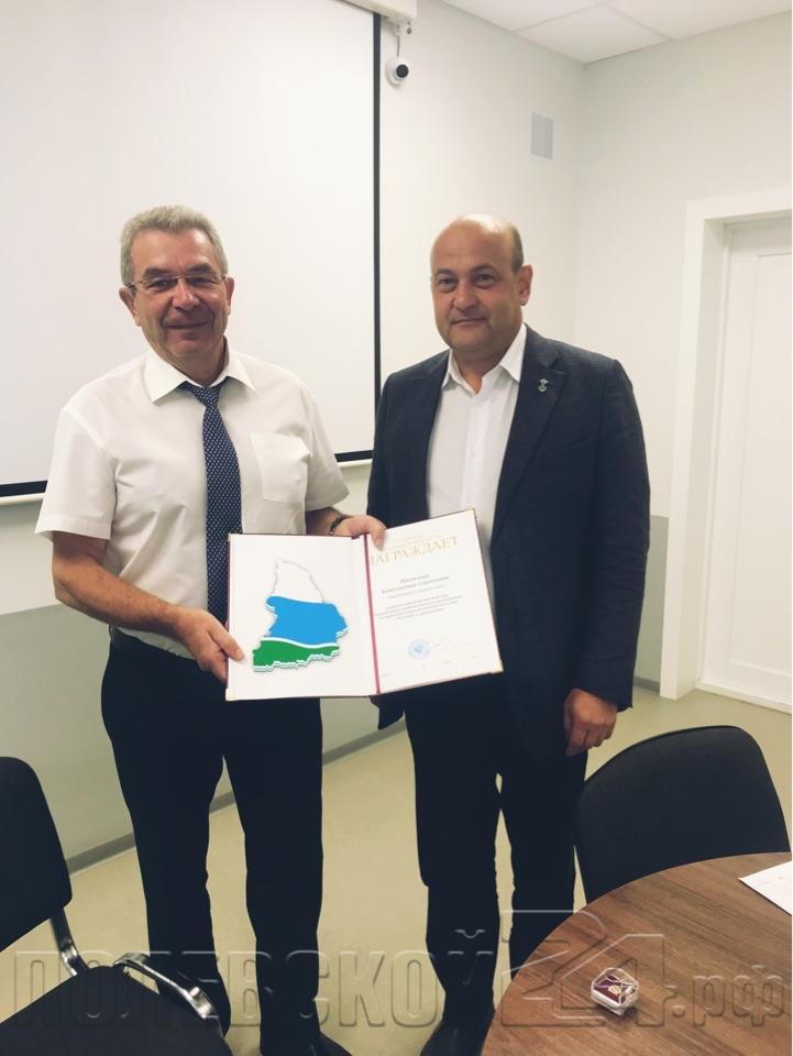 Виталий Александрович вручил Главе не только почетную грамоту, но и знак отличия. Управляющий округом отметил, что Полевской отличают сплоченность и результативность, плодотворная командная работа руководства города. Константин Сергеевич получил почетную грамоту Губернатора Евгения Куйвашева за многолетний добросовестный труд, большой вклад в развитие местного самоуправления на территории Свердловской области и в связи с юбилеем со дня рождения.