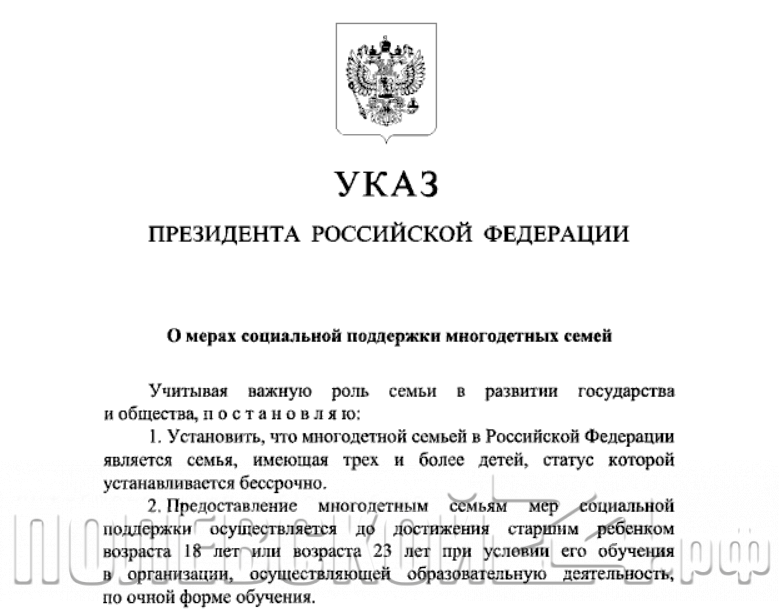 Президент издал указ о многодетных