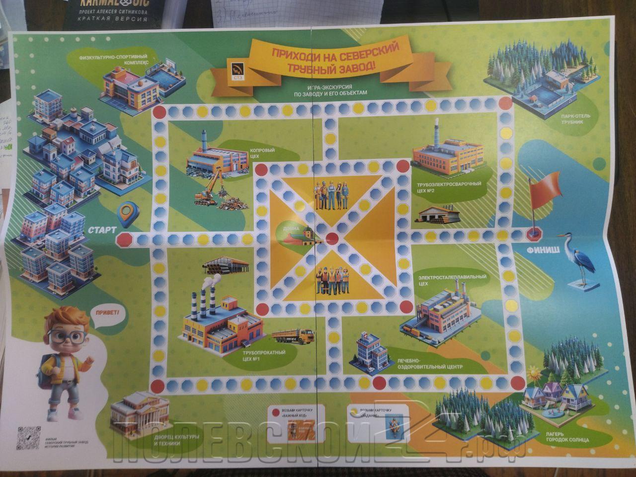 Это настольная игра, которая познакомит ребят с процессом производства северской трубы на градообразующем предприятии Полевского.