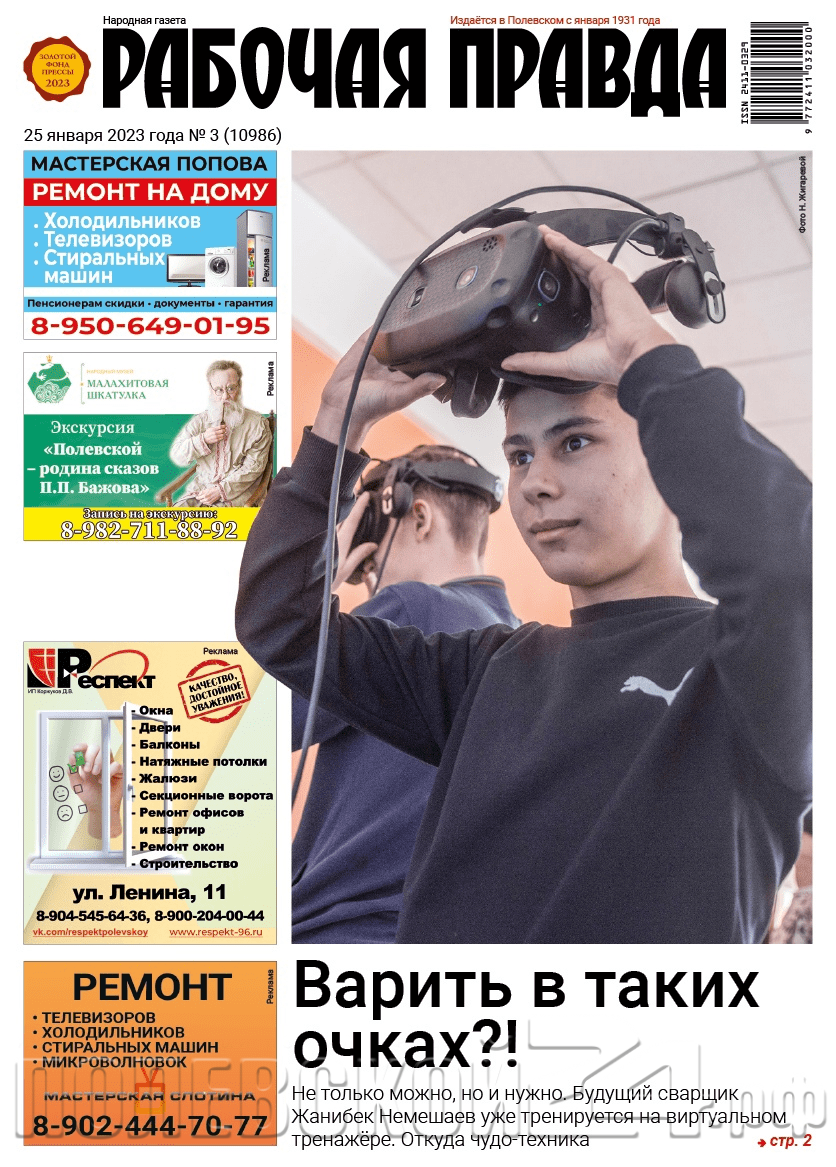 В Полевском новый начальник Управления Культурой, в многопрофильном техникуме погружение в профессию сварщика начинают с виртуальной реальности, а финансовая грамотность полевского населения на втором месте в области. Подробнее на стр. 2