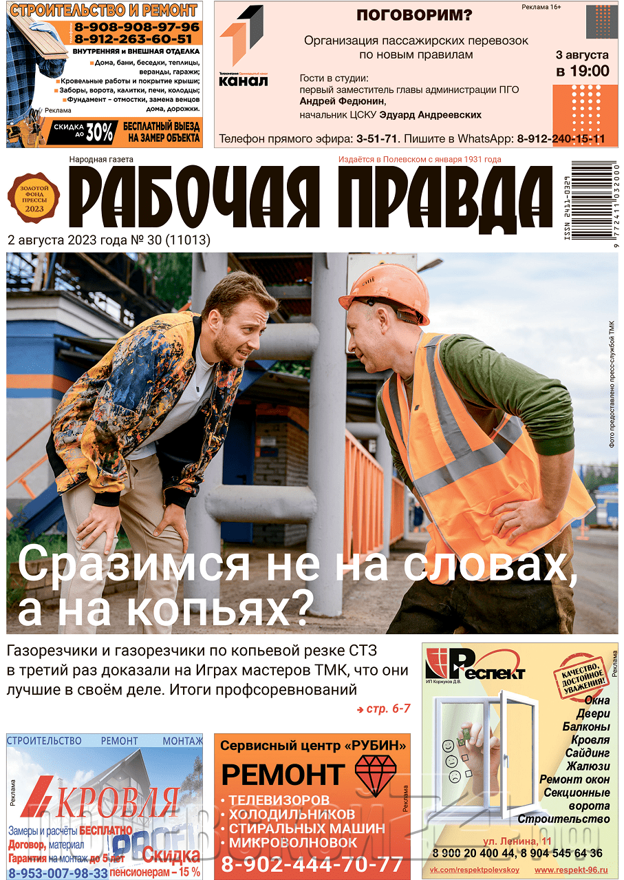 Первая страница номера посвящена одному из самых ярких событий прошедшей недели – турниру Трубной Металлургической Компании «Игры мастеров», что прошли в нашем городе. Итоги и подробности ищите на страницах 6 и 7.