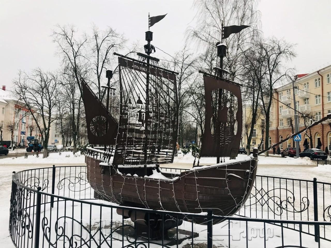 В Полоцке правил князь Владимир (на фото его бюст из краеведческого музея Полоцка). Он сумел отбить первые нападения крестоносцев, но понимал, что без помощи славянских соседей не обойтись. Однако первый союз был заключён лишь спустя 20 лет после смерти Владимира – с Александром Невским. Только набеги крестоносцев не прекратились. Правящий полоцкий князь принимает решение заключить союз с недавно созданным государством – Великим княжеством Литовским. В 1307 году Полоцк добровольно входит в его состав. Окончательный разгром тевтонцев произошёл в 1410 году. А в 1498 году Полоцк получает право на самоуправление. Именно тогда город получает свой герб – трёхмачтовый корабль с развёрнутыми парусами на синем фоне