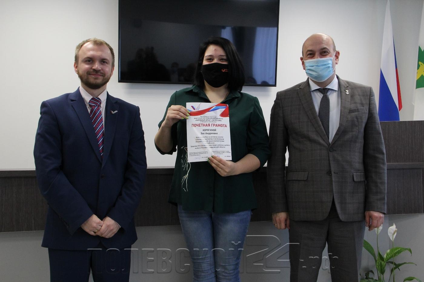 После награждения Константин Сергеевич и представитель Народного фронта Артем Ланцев пообщались с волонтерами лицом к лицу.