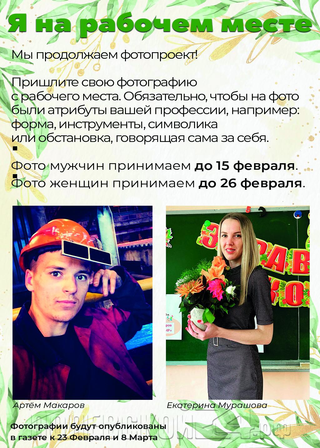 Дорогие мужчины, если хотите поучаствовать в фотопроекте «Я на рабочем месте», поспешите – ваши фото мы принимаем до 15 февраля.