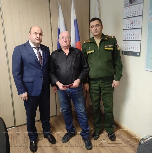 Награду отцу Юрия Олегу Юрьевичу, вручили военный комиссар Руслан Хаюмов и глава города Константин Поспелов.