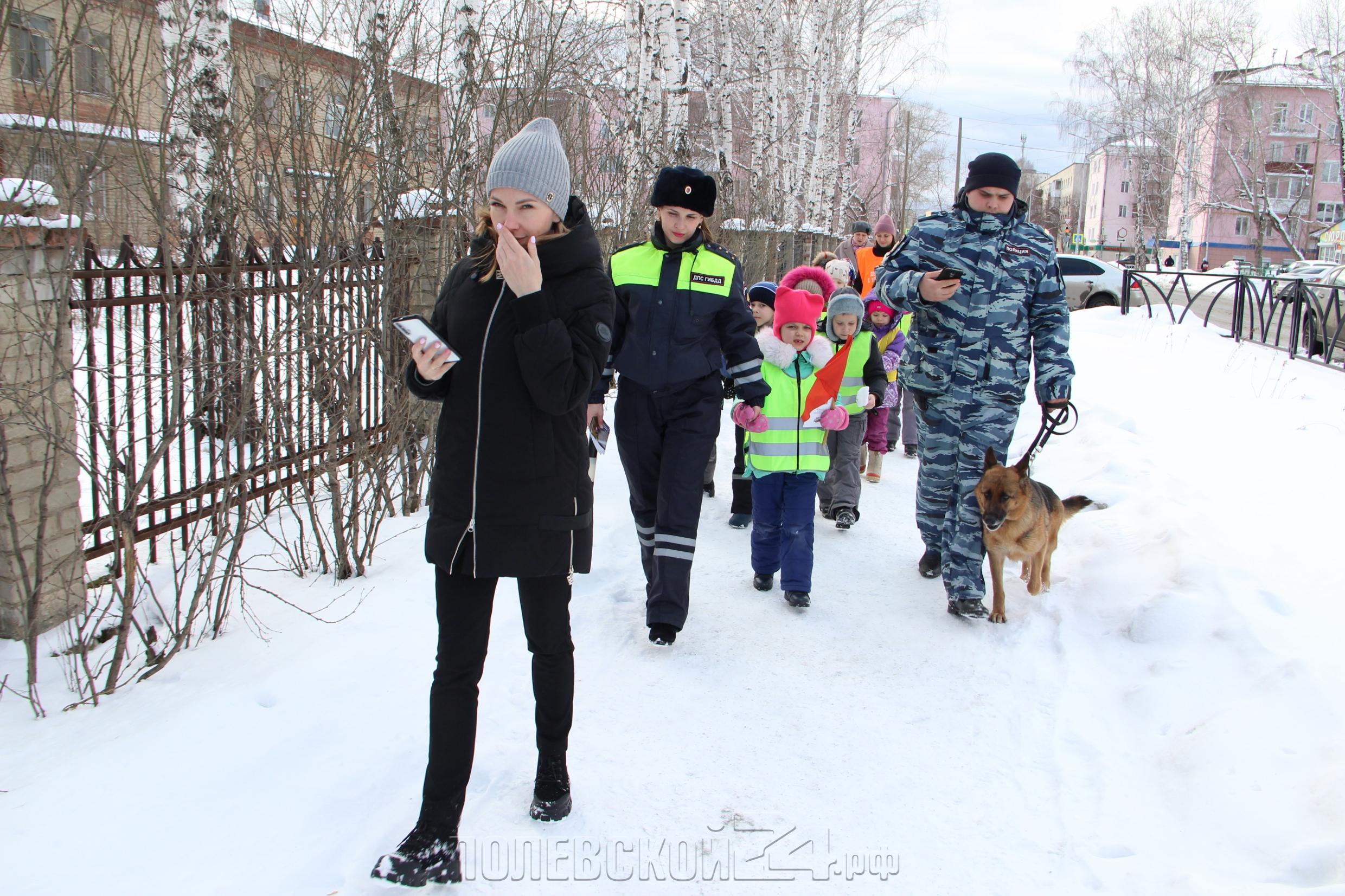 Инспектор по пропаганде полевского ОГИБДД Юлия Хафизова после небольшого разговора рядом с паспортом дорожной обстановки провела с воспитанниками занятие прямо на улице — дети дошли до перекрестка Розы Люксембург-Свердлова, где повторили, как следует переходить улицу, на какой светофор глядеть и куда смотреть перед тем, как шагнуть на мостовую. Как оказалось, большинство из них все это неплохо знает, даже на таком активном и сложном перекрестке.