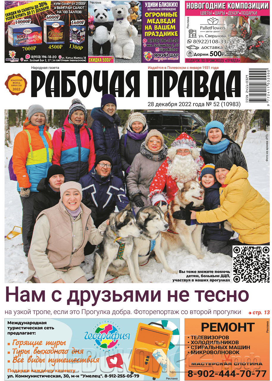Кому повезло накануне Нового года, читайте на странице 14. Здесь опубликованы итоги акции среди подписчиков «Рабочей правды» — «Время подарков».