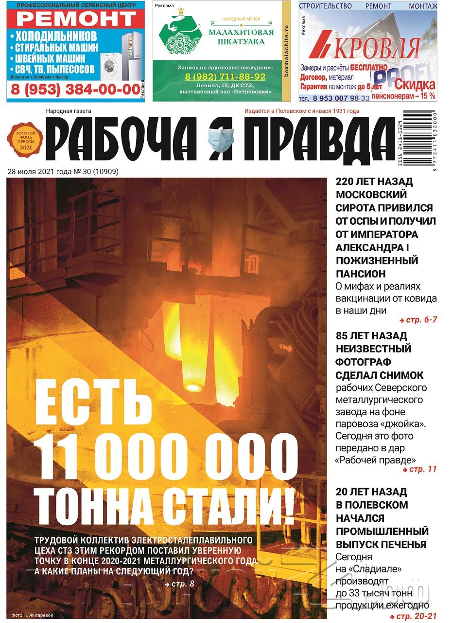 На страницах свежего выпуска газеты «Рабочая правда» радуемся за рекорды северских металлургов, разбираем самые актуальные вопросы вакцинации, ищем, где в Полевском есть общественные туалеты, пытаемся разгадать тайну старой фотографии и участвуем в новом проекте «Совсем озеленели». Подробности – далее.