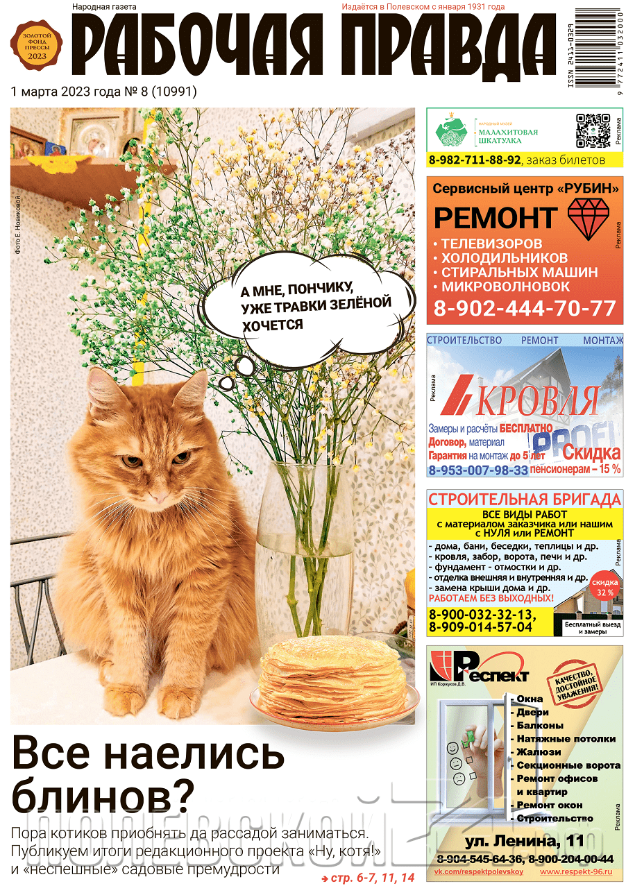 О котах и не только. Свежий номер «Рабочей правды» в продаже