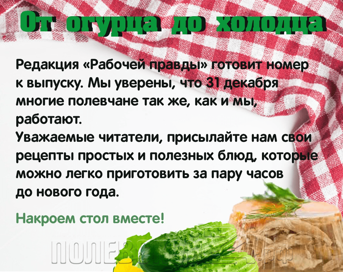 Уважаемые читатели, присылайте нам свои рецепты простых и полезных блюд, которые можно легко приготовить за пару часов до нового года.