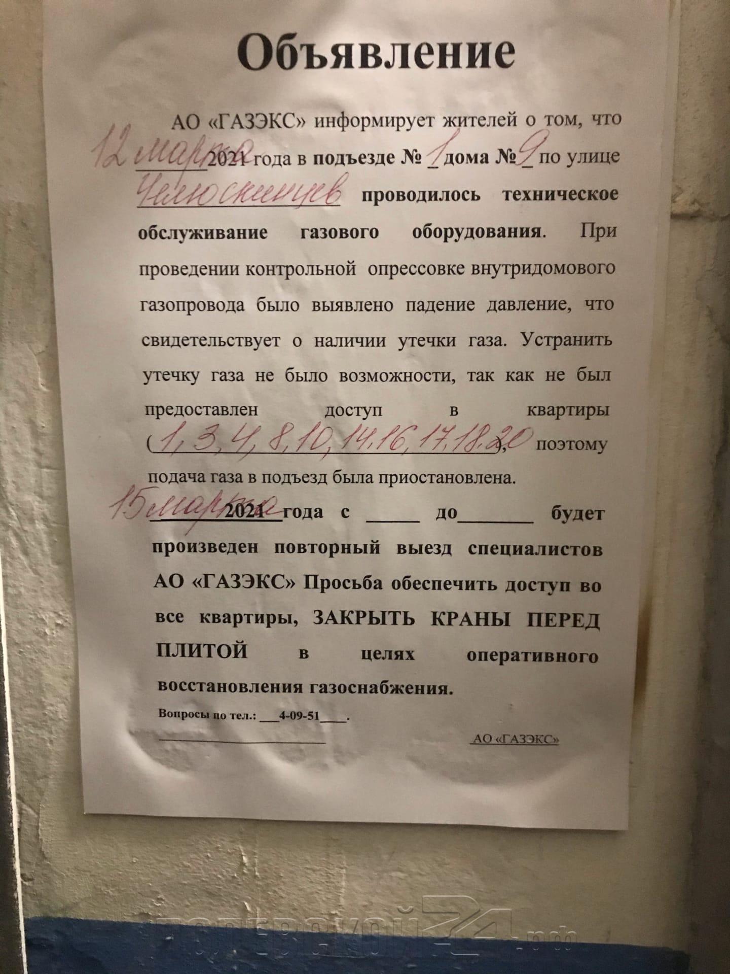 «В домах по указанным адресам проводилось плановое техническое обслуживание газового оборудования. В ходе техобслуживания всегда проводится контрольная опрессовка газопровода, которая в данном случае показала падение давления, это значит, что газопровод негерметичен. Чтобы обнаружить место утечки газа и устранить её, необходимо проверить оборудование в каждой квартире. Однако доступ в ряд квартир газовикам предоставлен не был, найти утечку газа не удалось. В такой ситуации восстановить газоснабжение в доме невозможно, это представляет угрозу жителям дома. Специалисты АО «ГАЗЭКС» руководствуются в своей работе нормами закона и никогда не поставят под угрозу здоровье и жизни людей. Газ возвращается в квартиры, как только ликвидирована проблема и гарантирована безопасность граждан».