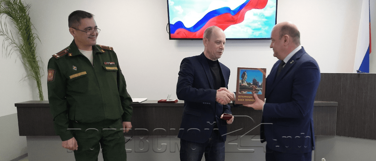 Сегодня в городской администрации вручили сразу две награды. Военком города Руслан Хаюмов наградил участника специальной военной операции Наила Николаевича Юсупова медалью ордена «За заслуги перед Отечеством» II степени.