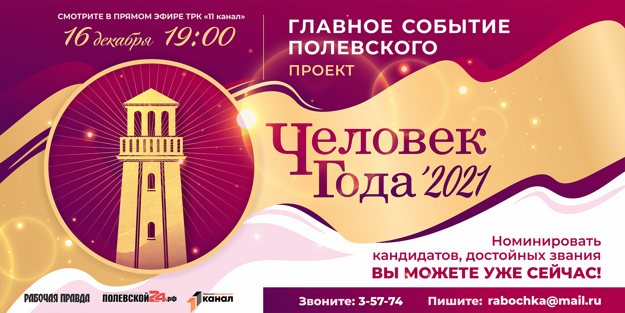 Предложить для присвоения звания «Человек года» вы можете любого жителя Полевского городского округа, внесшего, на ваш взгляд, в 2021 году серьезный вклад в развитие города, улучшившего его облик или имидж, проявившего самоотверженность и бесстрашие и т.п.