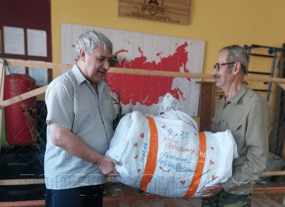 У волонтёров проекта «Сети добра» нет выходных и отпусков. Они находят время, чтобы продолжать помогать нашим ребятам. Помимо антидроновых тентов, которые очень востребованы, полевчане без устали плетут сети. И это не только женщины — труженицы. Григорий Александрович Калинин (справа на фото) и Игорь Витальевич Николаев изготовили большую сеть из серии «Хрен победимая».