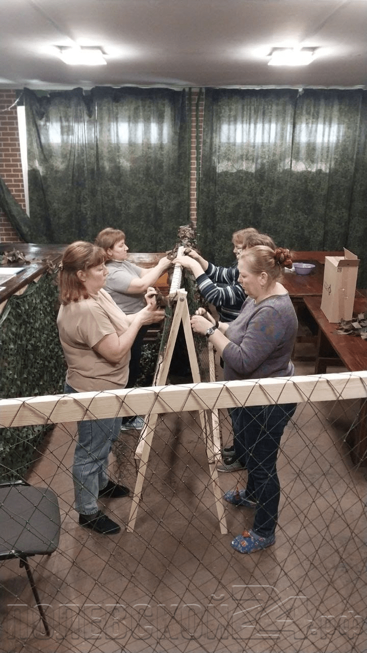 Екатерина Побокина, Дарья Каткова, Евгения Неуймина, Мария Шлехова и Галина Куделькина прошли обучение по плетению маскировочных сетей. Теперь волонтёры самостоятельно плетут маскировочные сети для бойцов СВО.