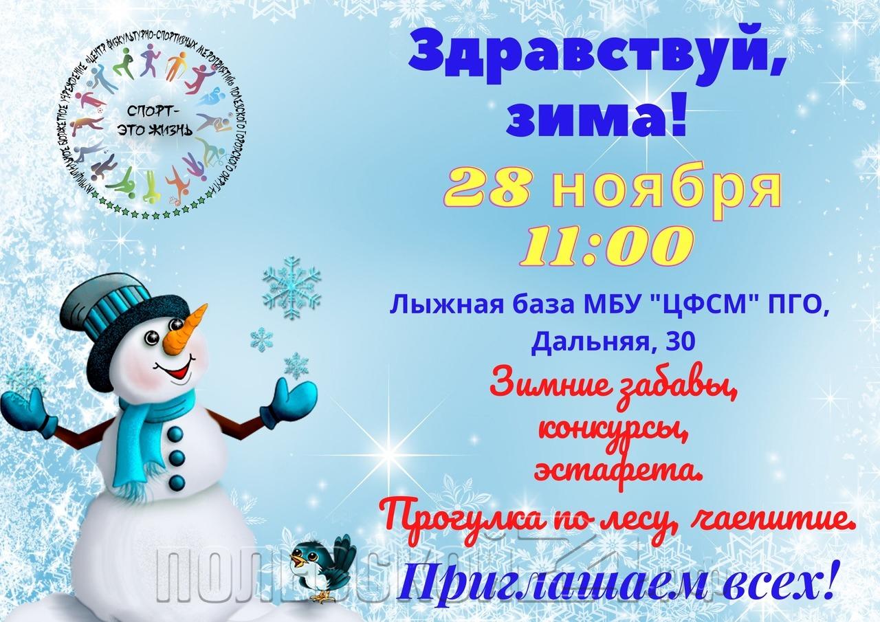 В это воскресенье, 28 ноября, в 11-00 для больших и маленьких полевчан состоится зимний спортивный праздник «Здравствуй, зима!»