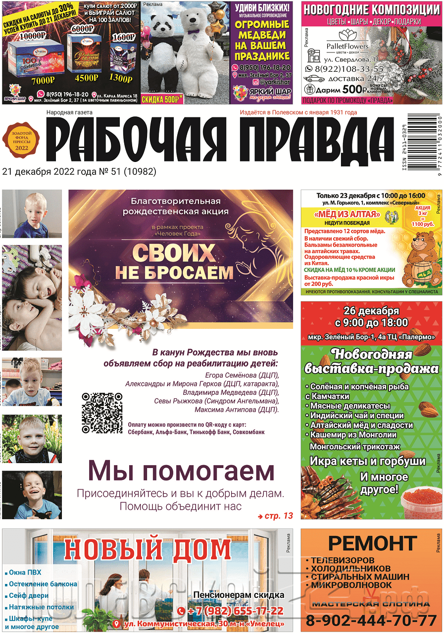 Так же в номере удобная программа для 18 телеканалов. Ваши объявления и праздничная афиша на стр 23. Создайте себе настроение перед праздниками, планируйте свои новогодние каникулы. Читайте «Рабочую правду» – это хороший тон.