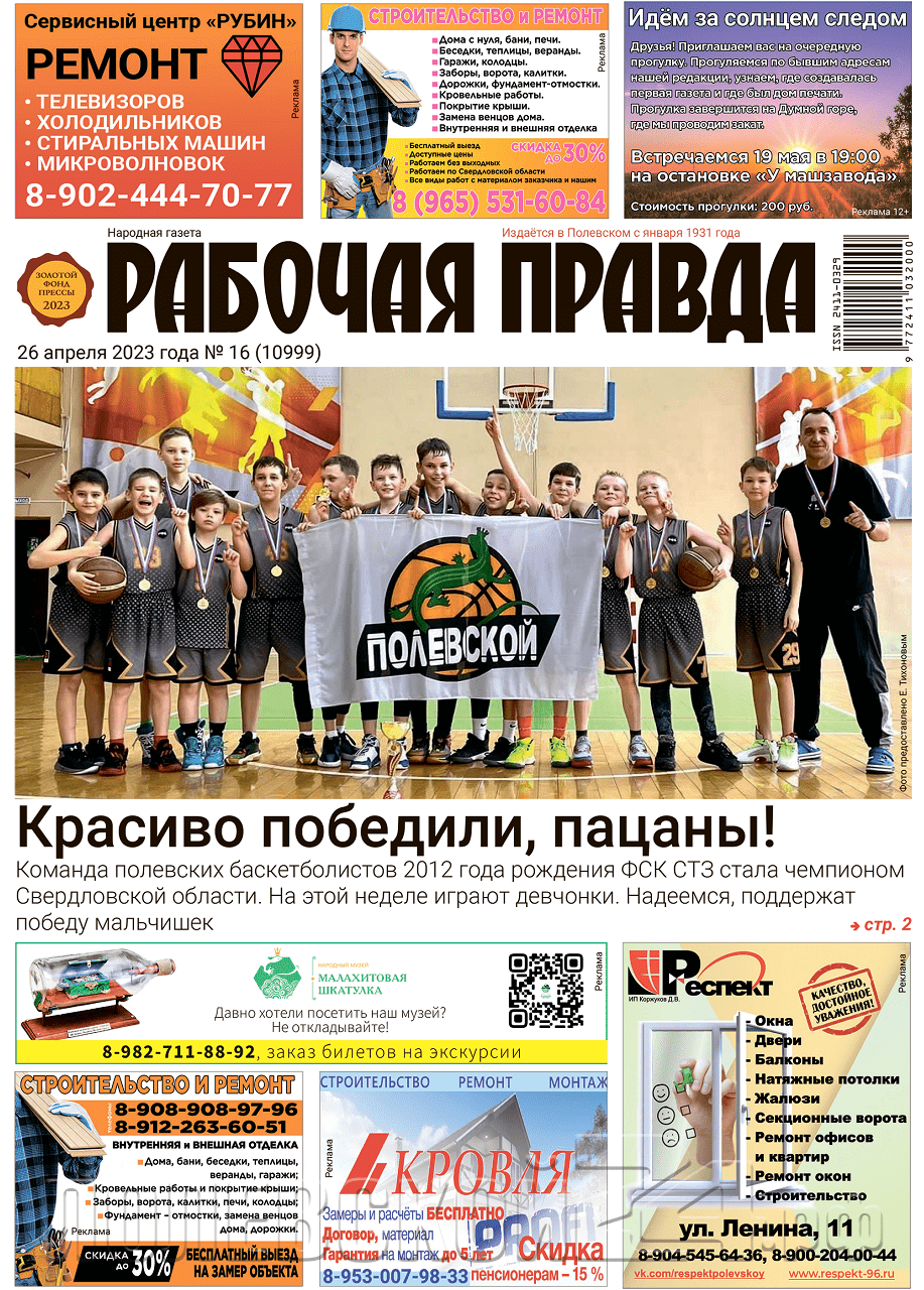 На первой полосе – красивая победа полевских мальчишек-баскетболистов. Как ребята стали чемпионами, рассказываем на стр. 2.