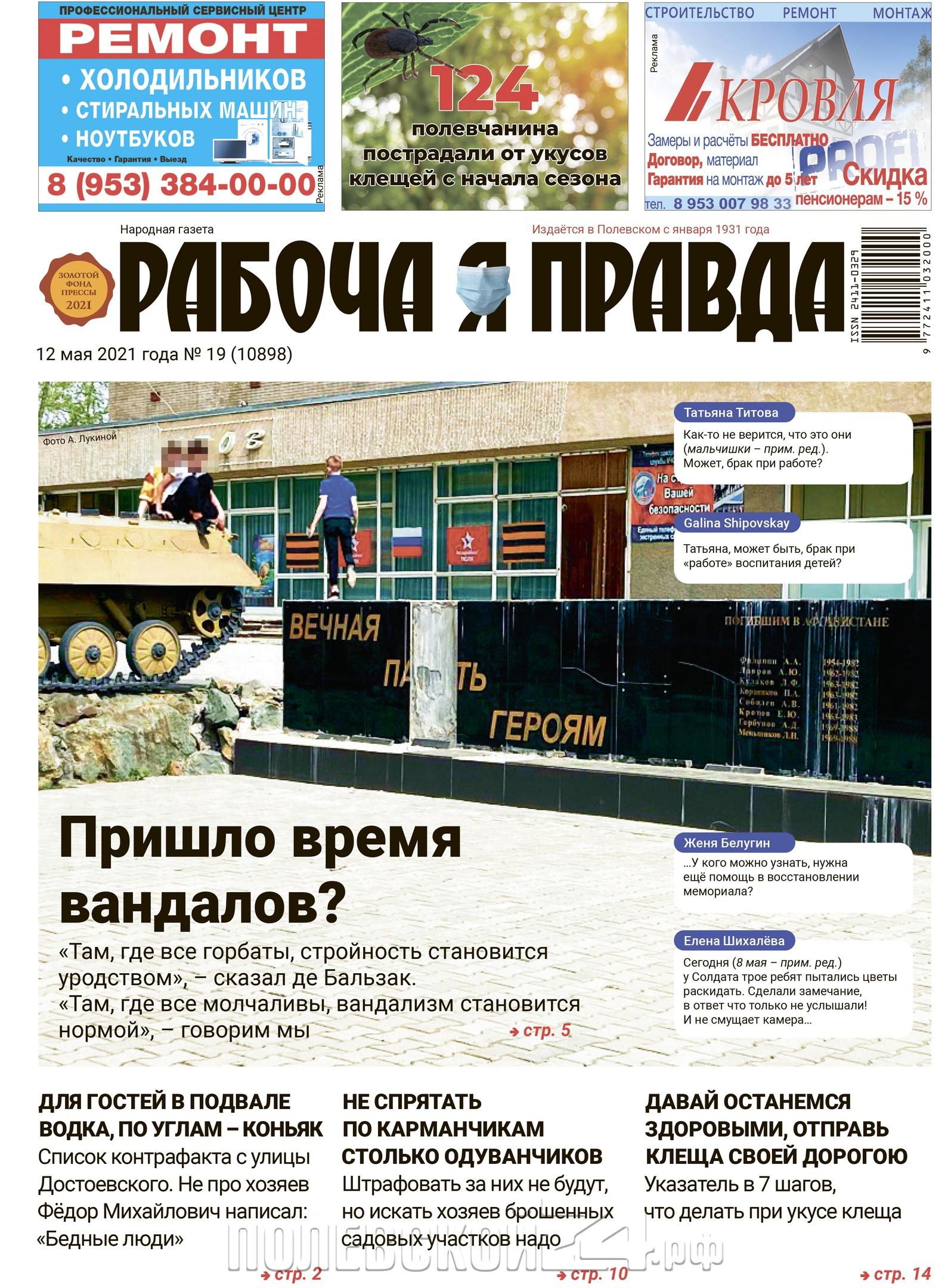 На этой неделе газета «Рабочая правда» разбирается почему подростки упражняются в хамстве и вандализме, на что жалуются полевчане и будут ли штрафовать за одуванчики. Вместе с журналистами вы совершите онлайн-путешествие по музеям Полевского, посмотрите, как реконструируют Гумёшевский рудник и загляните в операционную.