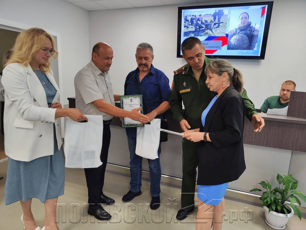 Родителям полевчан Станислава Лобанова и Ивана Горбатенко глава города вручил благодарственные письма за хорошее, патриотическое воспитание сыновей, мужественно и достойно выполняющих боевые задачи в зоне специальной военной операции.