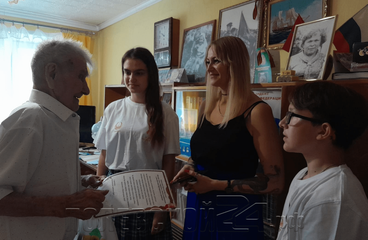 Поздравить ветерана с 305-летием города и 80-летием сражения под Прохоровкой пришли волонтеры Центр по работе с молодежью «Феникс», которые вручили ему поздравительный адрес Главы города Константина Поспелова и памятные подарки.