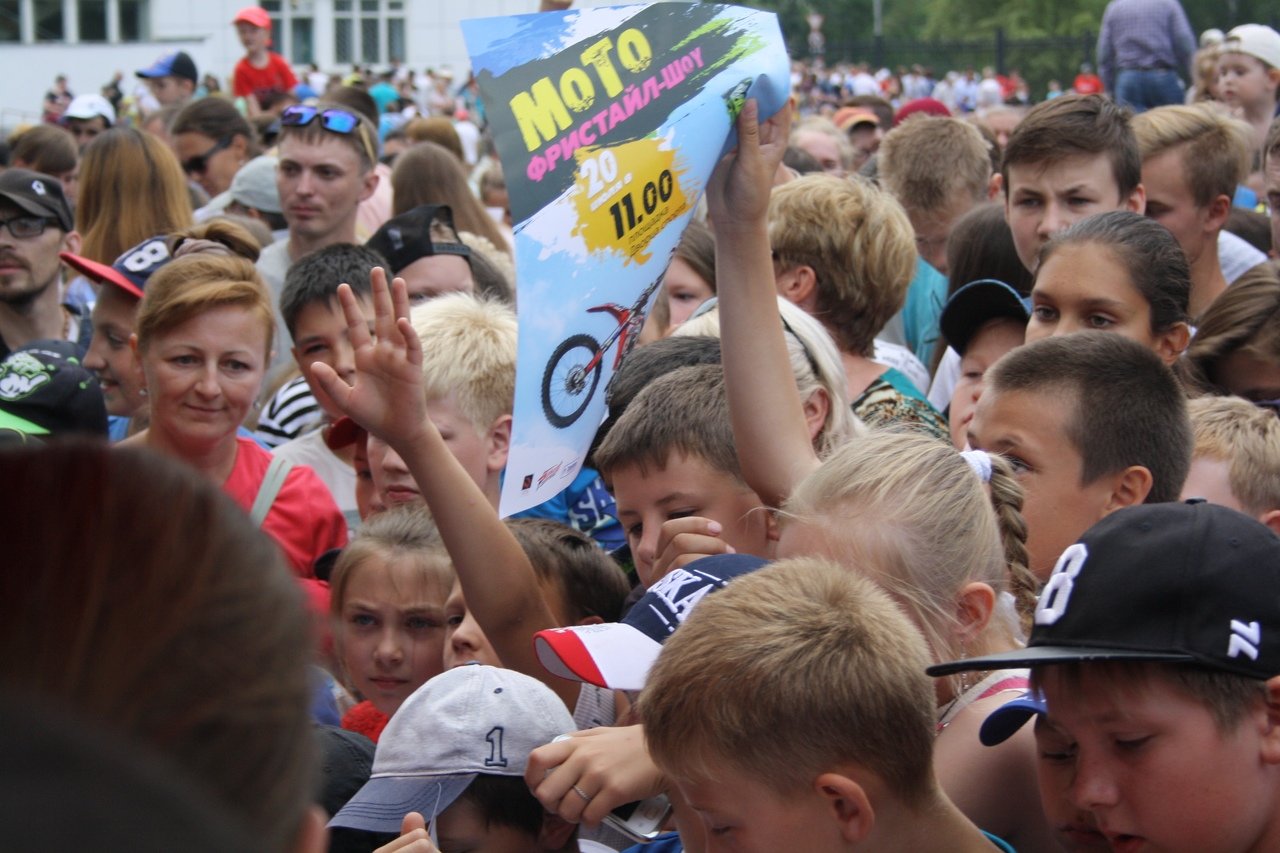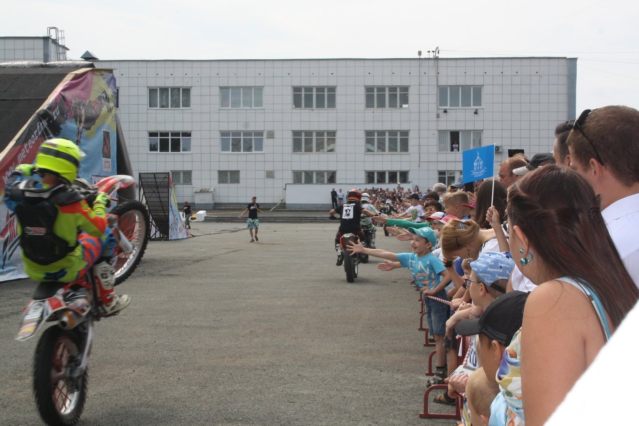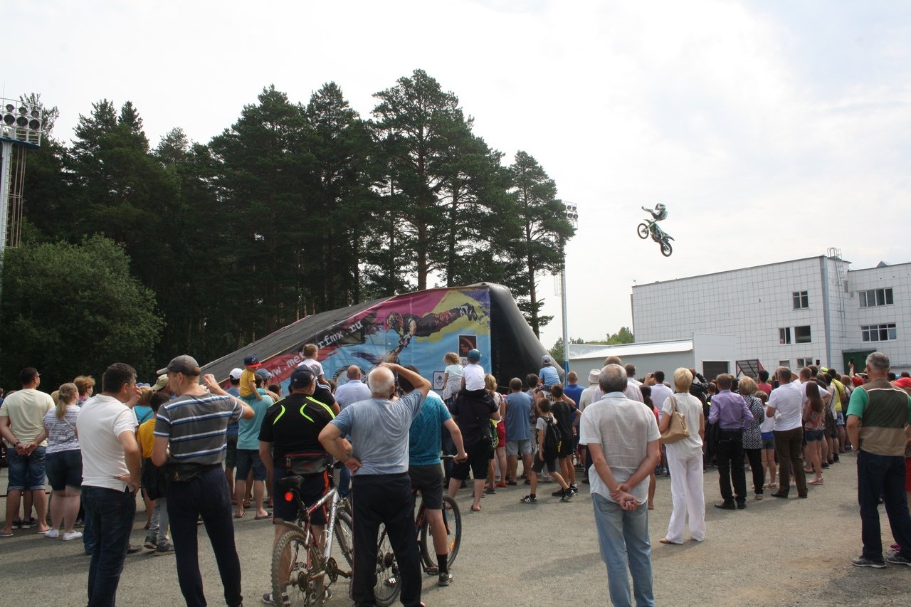 Здесь прошли показательные выступления, настоящее шоу по мотофристайлу команды METEOR FMX. Евгений Ашихмин, Олег Завьялов, Илья Бутаков и Никита Крячко показали головокружительные трюки, заставили зрителей хвататься за сердце и с восторгом рукоплескать.