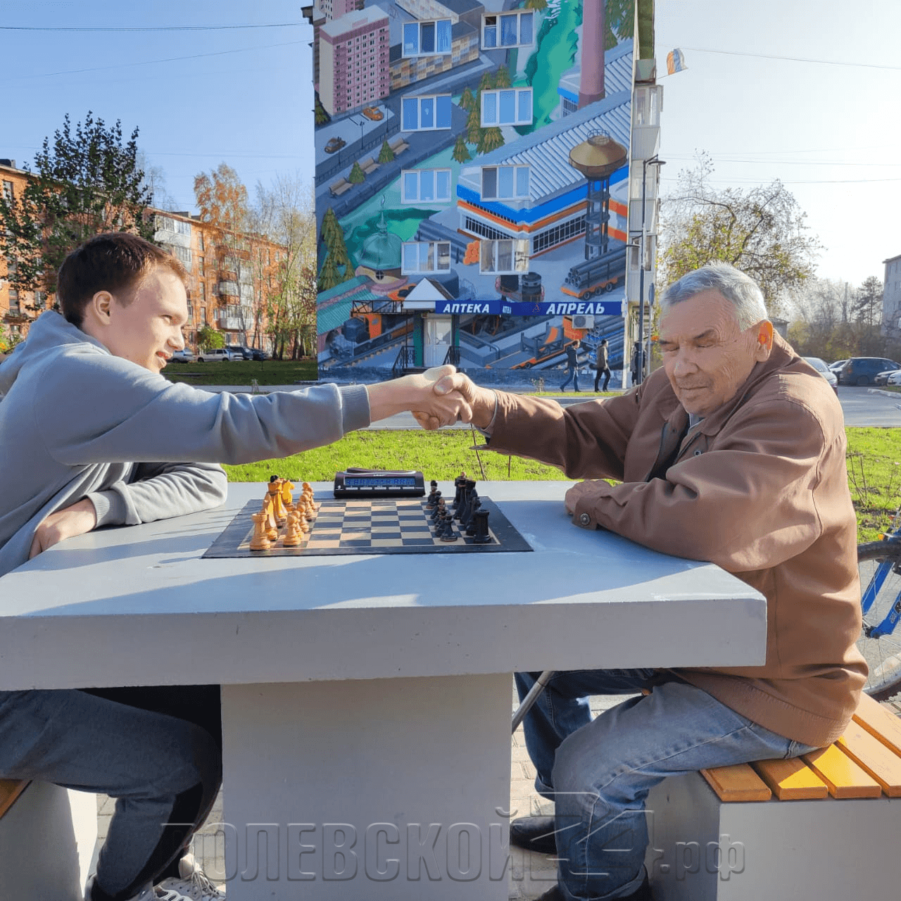 На Новой Коммунке напротив муралов на установленных там шахматных столиках уже состоялся шахматный турнир под таким же названием — «Шахматная Коммунка». Он был заявлен как ветеранский, однако за доски сели и молодые шахматисты. Но самому опытному — Анатолию Петровичу — 85 лет.