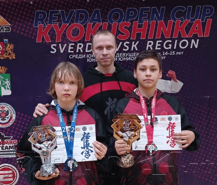Глеб Мазуркин занял первое место в категории юноши 12-13 лет весовой категории 55 кг. Яна Максимова привезла серебро  в категории девушки 12-13 лет 55 кг. Они участвовали в проходил традиционном Региональном XIV Кубке Ревды Кёкусинкай (каратэ).
