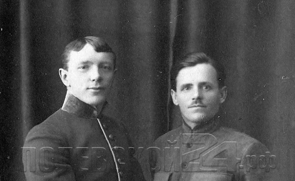 А на этом фото — красный командир Александр Григорьев (слесарь Северского завода) и его друг Евграф Жданов.