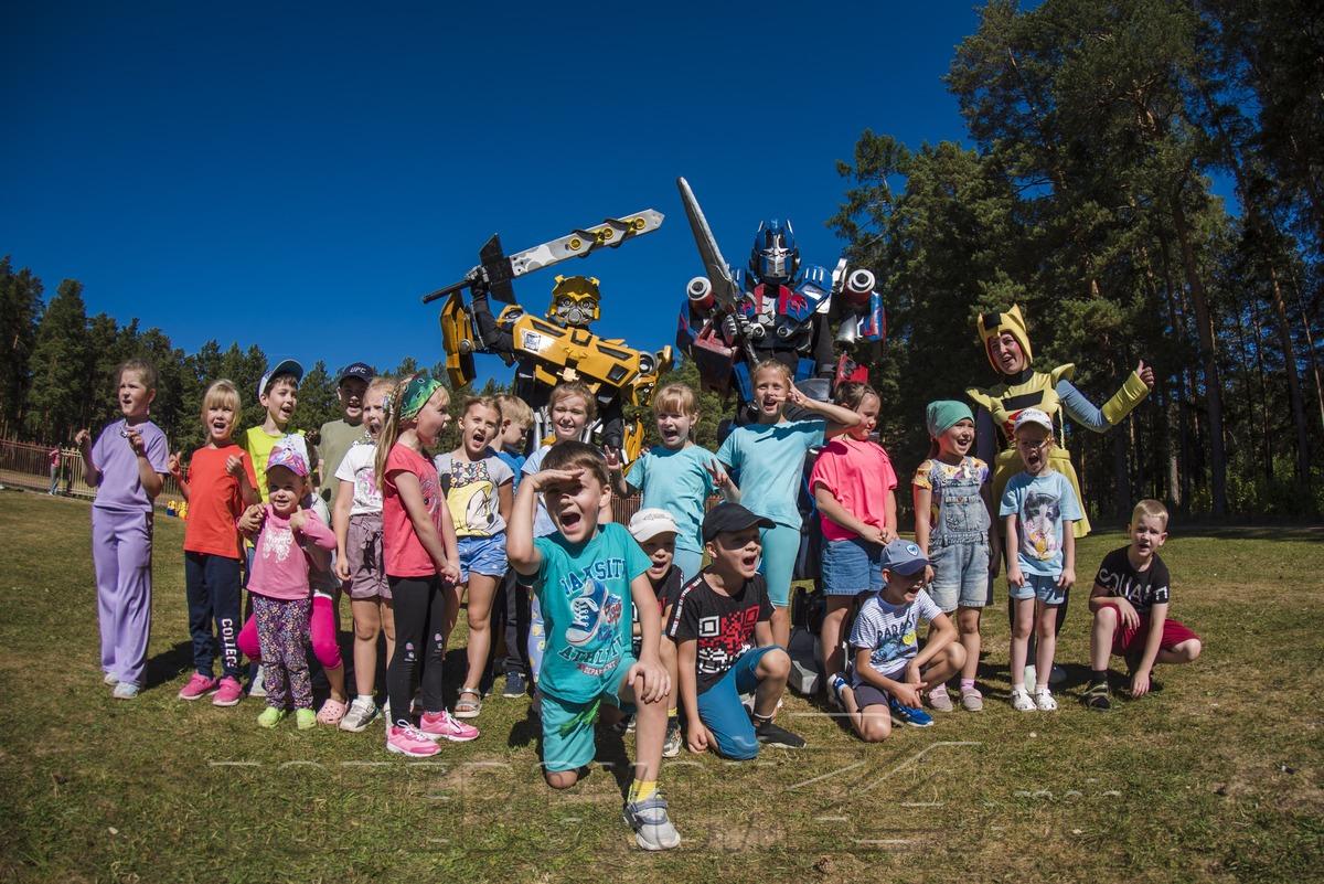 Конкурсы для ребятишек провели роботы-трансформеры Оптимус, Бамблби и их подруга Бамби.