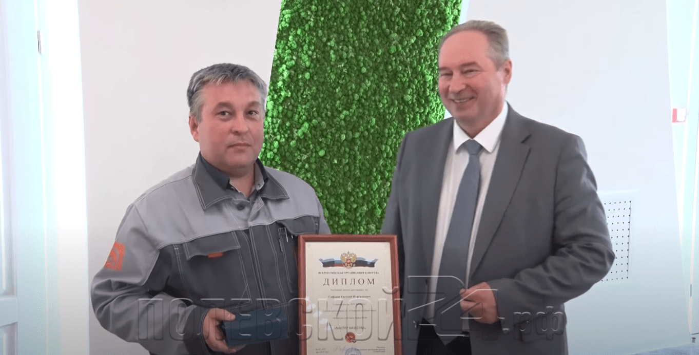 Вот уже 20 лет Всероссийская Организация Качества проводит ежегодное награждение наиболее отличившихся сотрудников предприятий за заслуги в области качества. В этом году два работника СТЗ удостоены заслуженных наград, ими стали начальник ЭСПЦ Евгений Житлухин и старший мастер Участка отделки труб №1 трубопрокатного цеха Евгений Сафаров.
