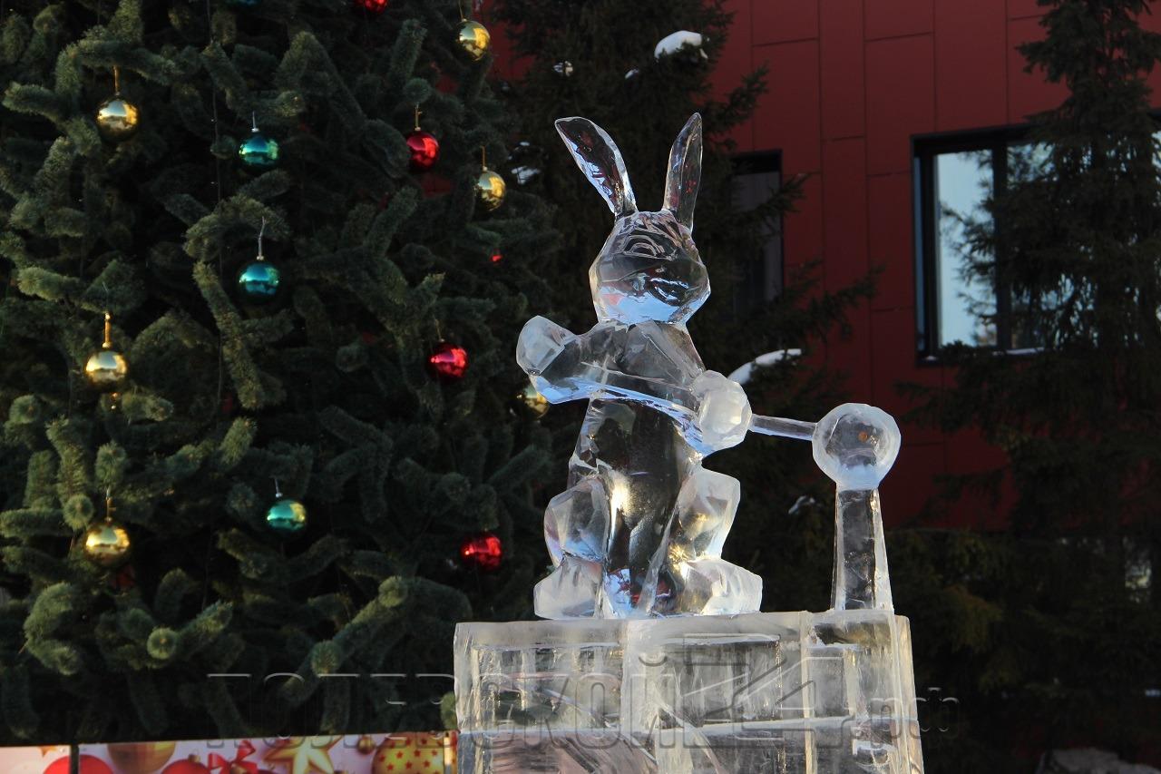 У заводоуправления СТЗ уже стоит елка. А сегодня возле нее прибавилась фигура символа года — зайца. Но не простого, а зайца-сталевара — в лапах длинноухий держит ковшик для взятия проб.