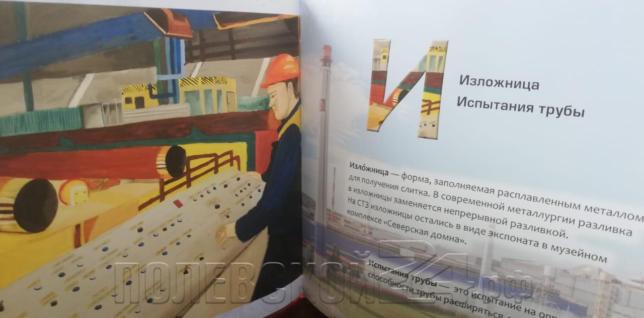 «АЗБУКА ЮНОГО МЕТАЛЛУРГА» составлена из особых слов — это специальные термины (например: вачеги, железо, каска, металлург, окалина, сталь, Трубная металлургическая компания, цапля, чугун, экология и др.), известные тем, кто работает на Северском трубном заводе на металлургическом производстве.